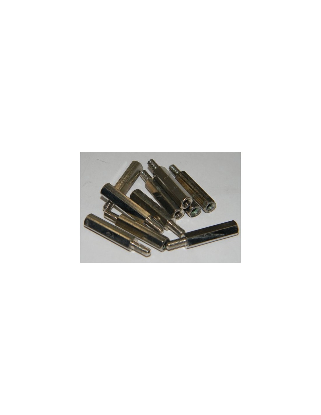 Maschio-Femmina. In ottone nichelato, sezione esagonale. Confezione da 10 pezzi.